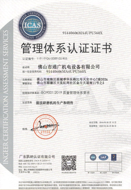 • + 2019.4.8 通廣機械通過ISO9001質量管理體系認證,CE認證,重合同守信用等各項認證及榮譽。