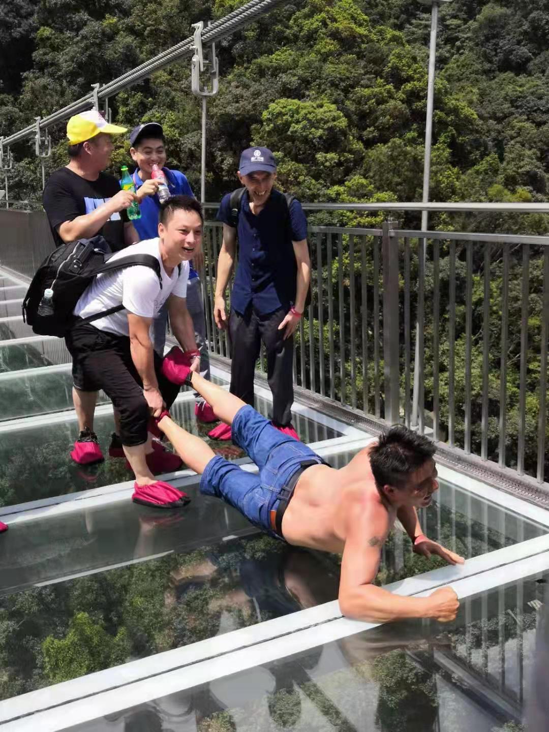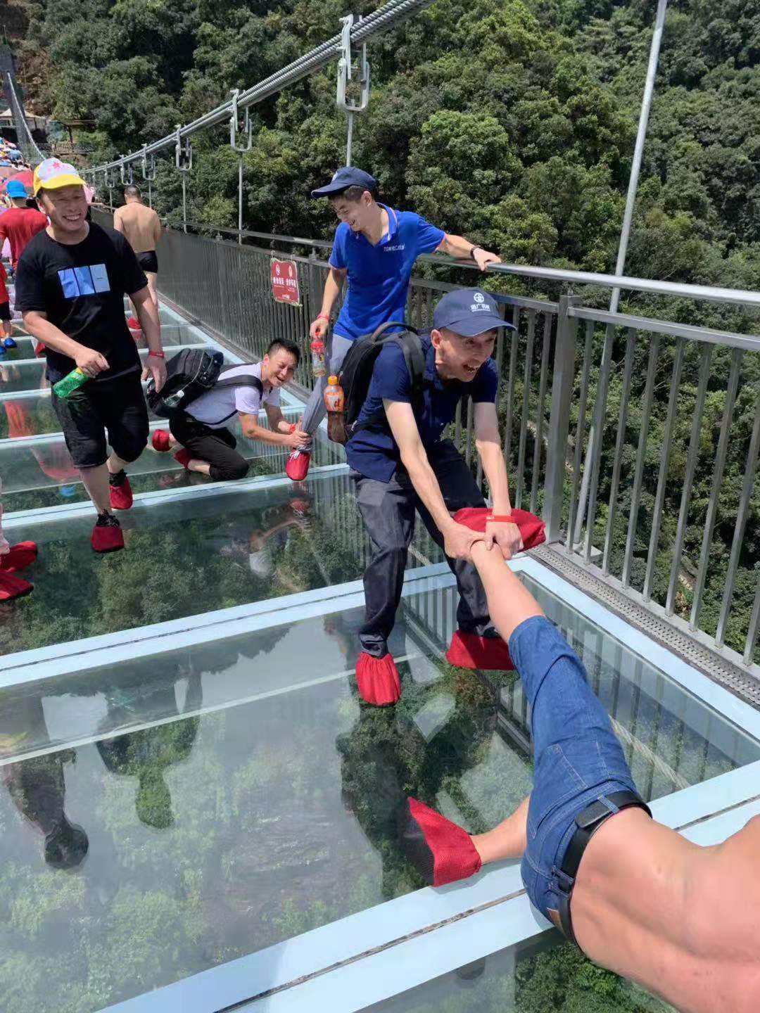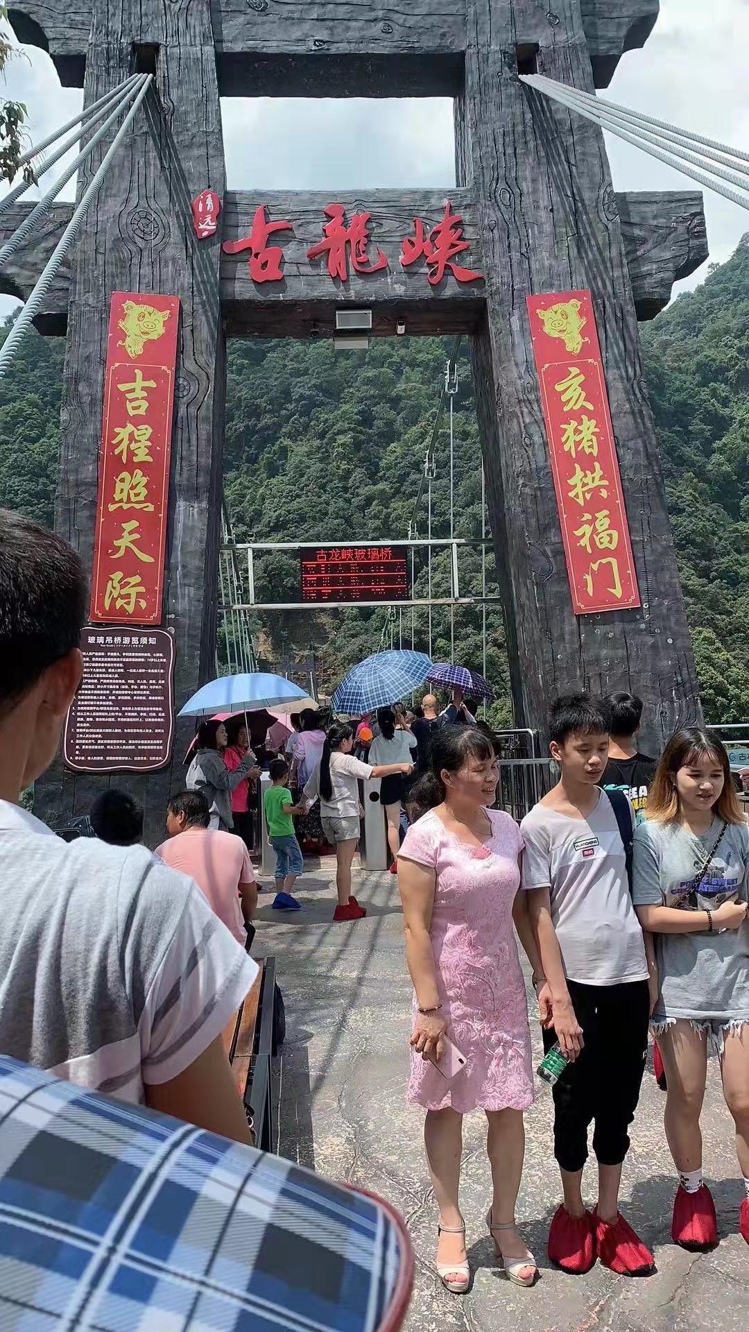 8月17日通廣人從佛山順德出發乘大巴前往我們的第一個目的地清遠——古龍峽!中午11時間,我們終于到達被評為國家體育旅游示范基地的古龍峽!來古龍峽肯定是要去走榮獲世界9項世界紀錄認證的玻璃峽谷了!這座玻璃橋海拔高520米長1314米,emmm,聽起來怎么有點對小編這樣的單身狗不太友好呢?(小編已哭暈在廁所) !
