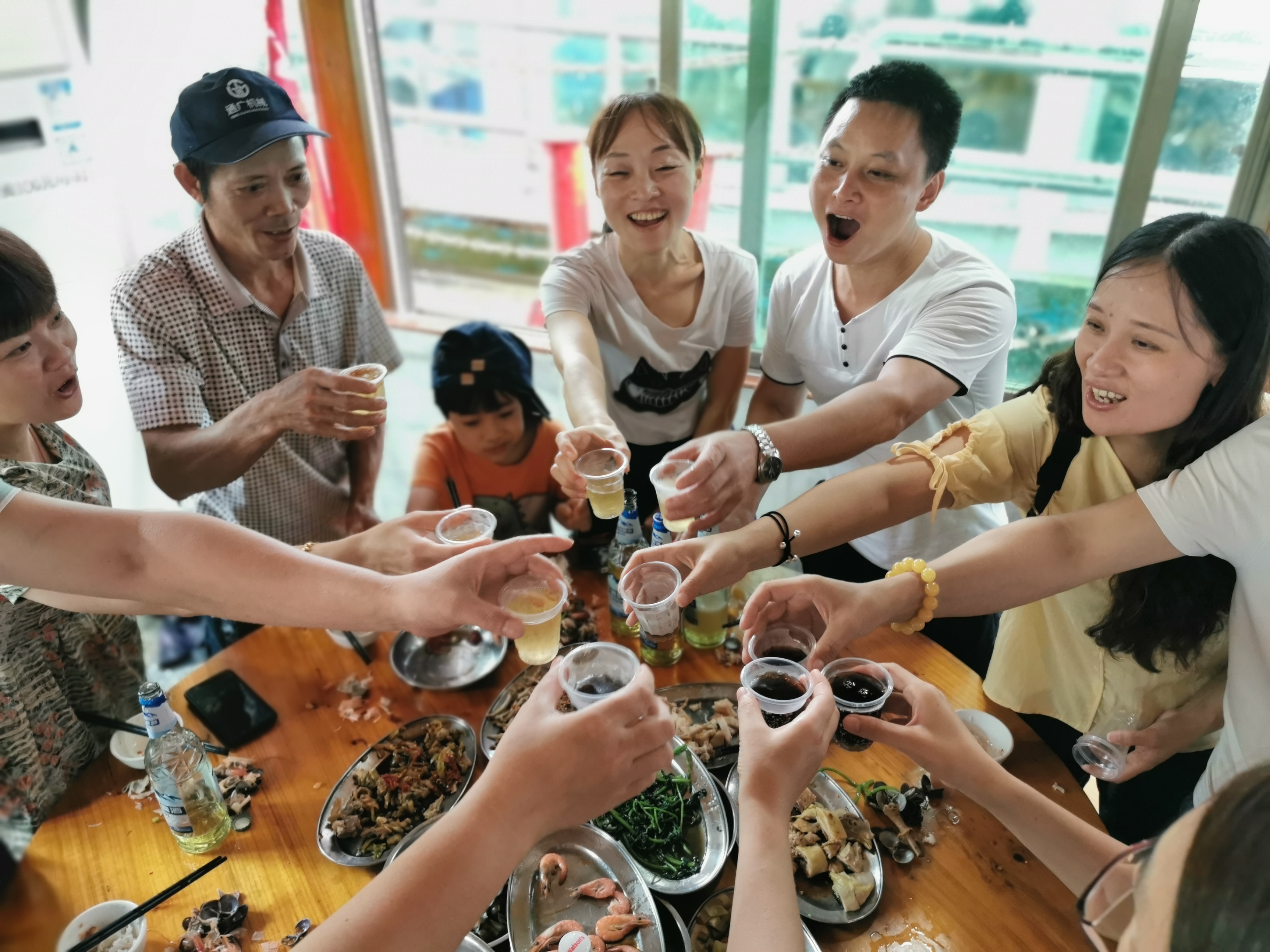 體驗完以后我們繼續乘大巴趕往下一個目的地,北江,在北江的酒店住了一晚,早上吃完早餐,去北江的游艇上邊看風景邊吃飯,在這里我們一起舉杯慶祝,也祝愿我們接下來一帆風順!